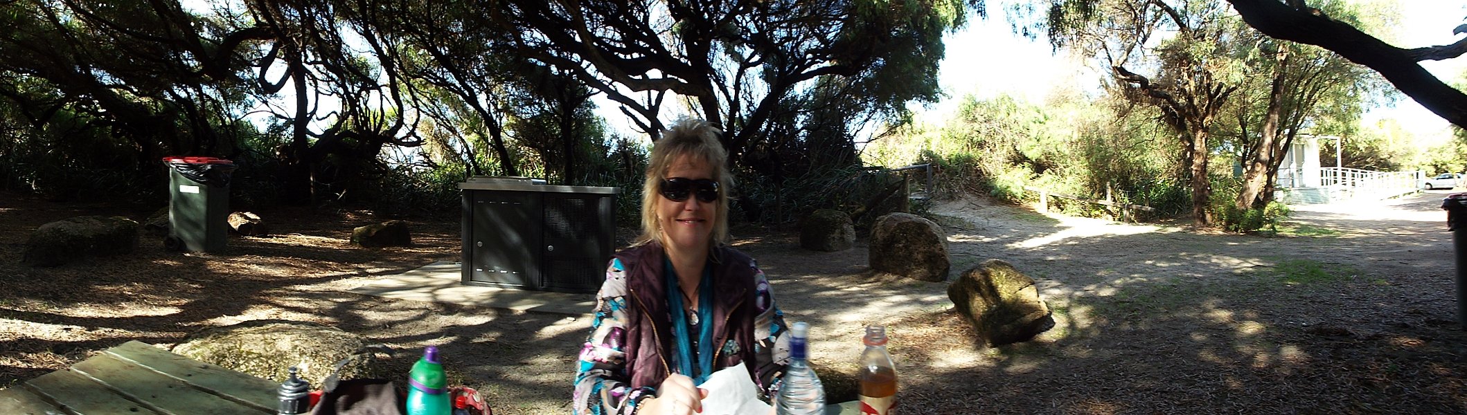 Sam under the tee-trees at Cosy Corner.