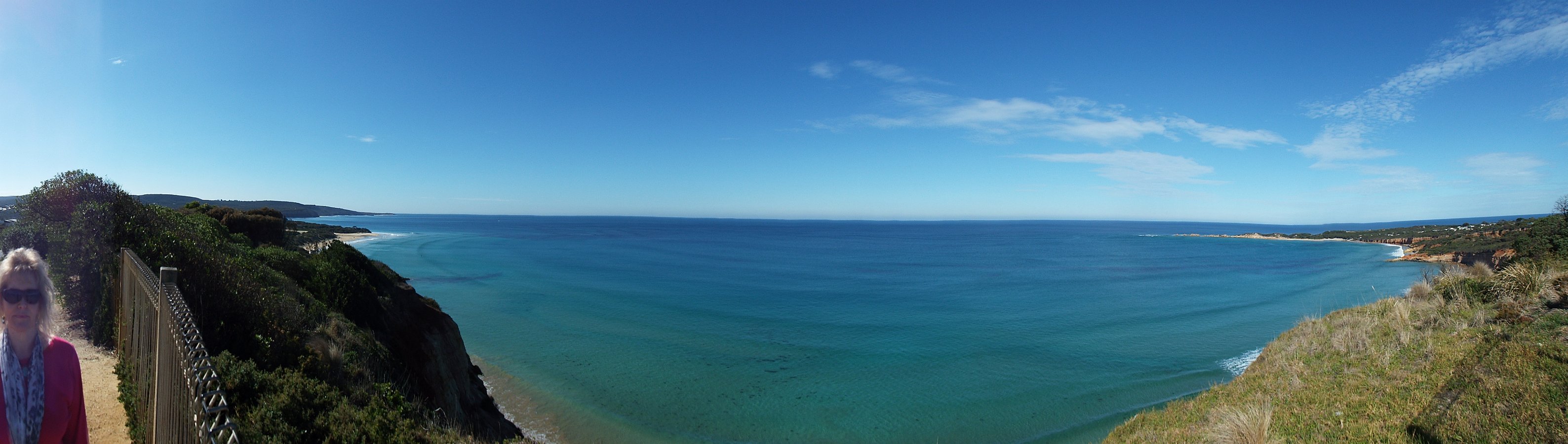 6 Sam at the lookout with a view of Point Roadknight, to the southwest of the town centre of Anglesea. |